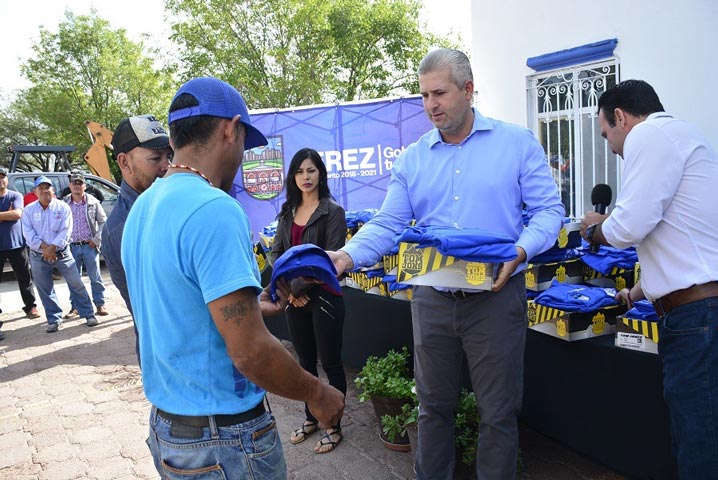 El Presidente Municipal Antonio Aceves Sánchez, entregó calzado y uniformes a 85 trabajadores de las áreas operativa, administrativa y comercial del Sistema Municipal de Agua Potable y Alcantarillado de Jerez (SIMAPAJ).