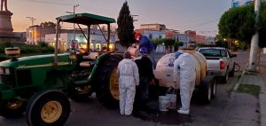 De 6:00 a 7:00 am, se esparcieron 2 mil litros de desinfectante a base de hipoclorito de sodio proporcionado por el Sistema Municipal de Agua Potable y Alcantarillado de Jerez (SIMAPAJ), con ayuda de personal de Limpia.