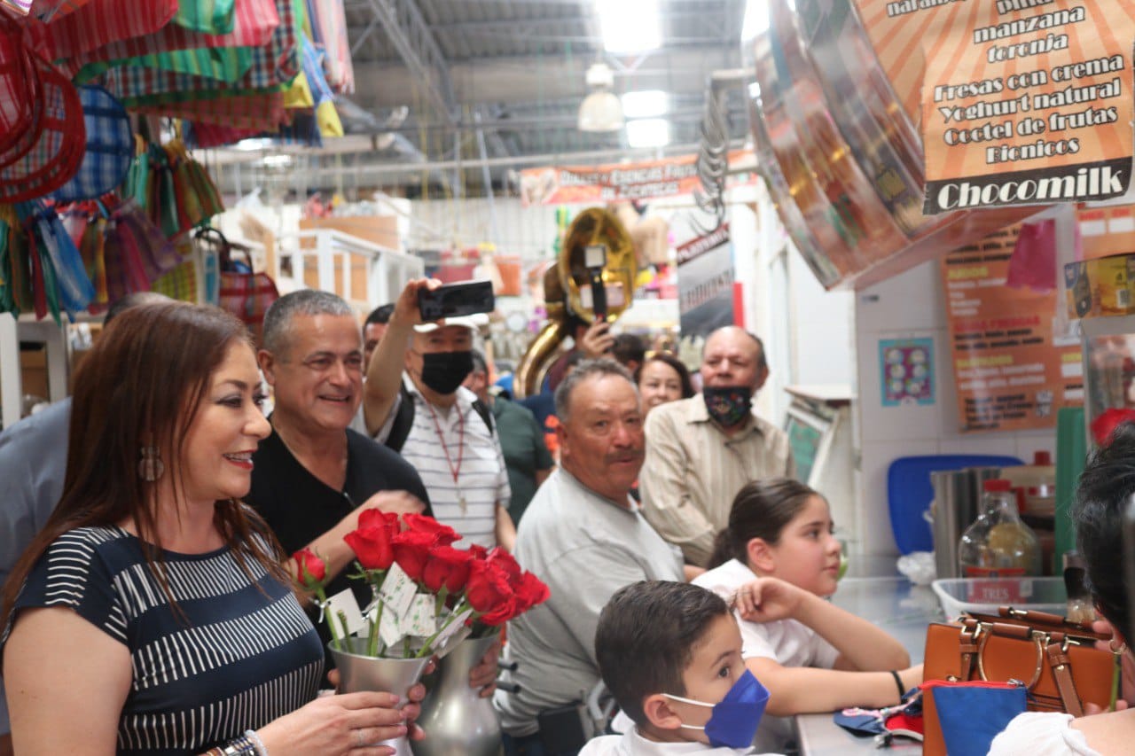 Siguiendo una tradición arraigada desde hace algunos años, este 10 de mayo, el presidente y su esposa la presidenta honorífica del DIF Bertha Alicia García Duarte realizaron un recorrido por el centro de abasto en su nave principal, área de comidas, patio, locales del perímetro y tianguis, con el objeto de felicitar personalmente a las madres y entregarles un presente.