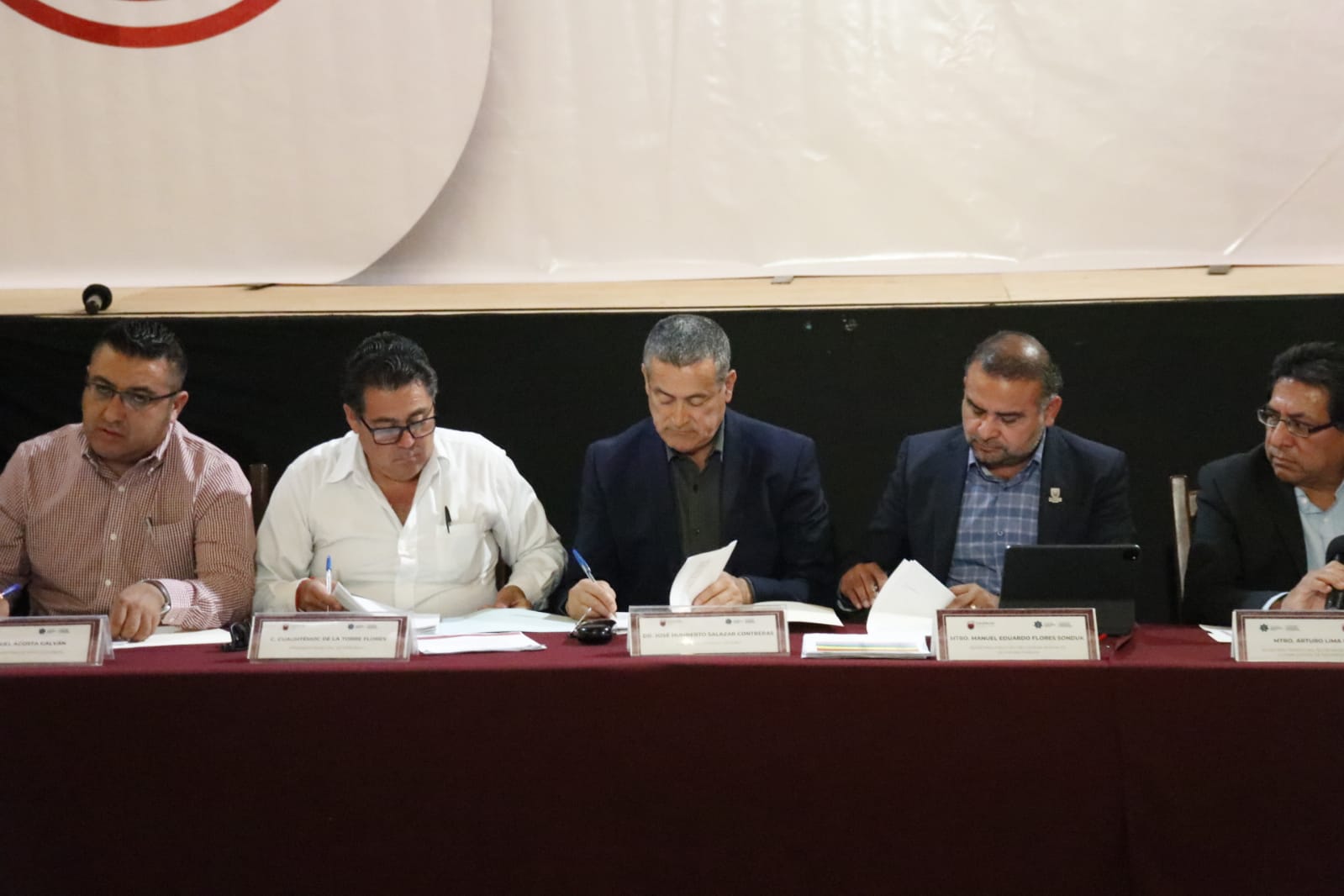 Jerez, Zac.- En el marco de la reunión del Consejo Intermunicipal de Seguridad Pública para la región sur-suroeste, el presidente José Humberto Salazar Contreras y los alcaldes de la región firmaron convenios de equipamiento, infraestructura y estímulos para los elementos de seguridad pública de los municipios, con la participación del secretario técnico del Secretariado Ejecutivo del Sistema Estatal de Seguridad Pública (SESP), Manuel Eduardo Flores Sonduk.