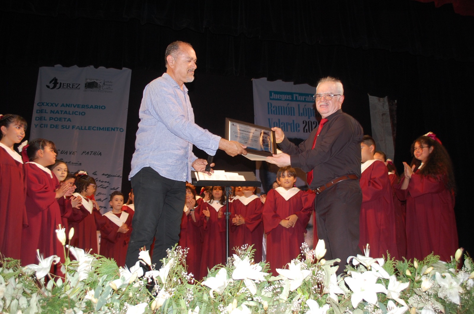 En nombre del alcalde José Humberto Salazar Contreras, el director del Instituto Jerezano de Cultura (IJC) Víctor Hugo Huízar Iturriaga hizo entrega del reconocimiento a la agrupación, en manos de su director, por su participación en los Juegos Florales; agradeció el trabajo de los niños y niñas que integran el coro y a los padres de familia que han brindado todo el apoyo a sus hijos.