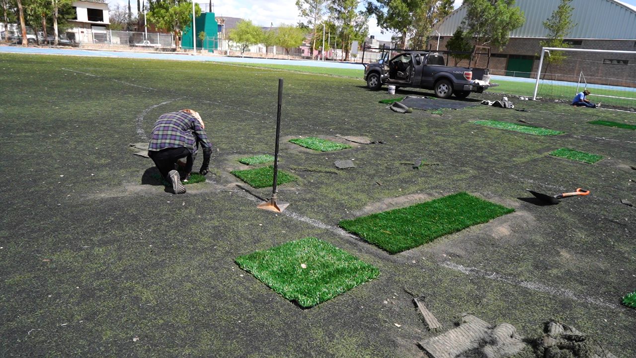 El gobierno municipal, a través de la Coordinación Municipal del Deporte, realizó la segunda etapa de la reparación parcial a la cancha de futbol de la Unidad Deportiva, que consistió en el cambio de pasto sintético en un total de 36 metros cuadrados de la superficie que conforma el área de juego.