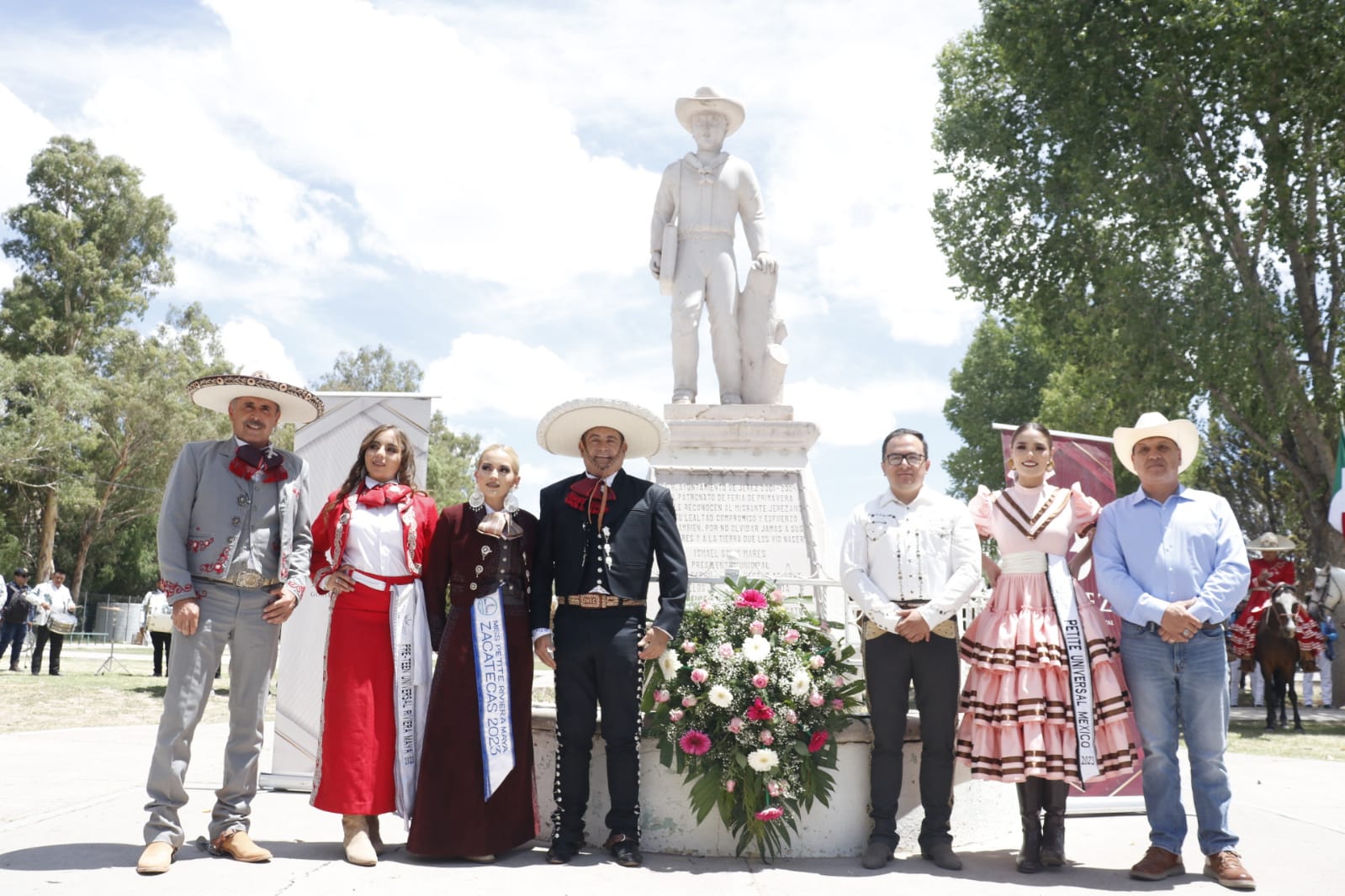 El alcalde José Humberto Salazar Contreras encabezó la ceremonia, acompañado de representantes de la belleza Jerezana, jinetes y funcionarios del gobierno municipal, quienes se reunieron en torno a la imagen representativa de la migración, ubicada en este sitio cercano a la entrada principal de la ciudad.
