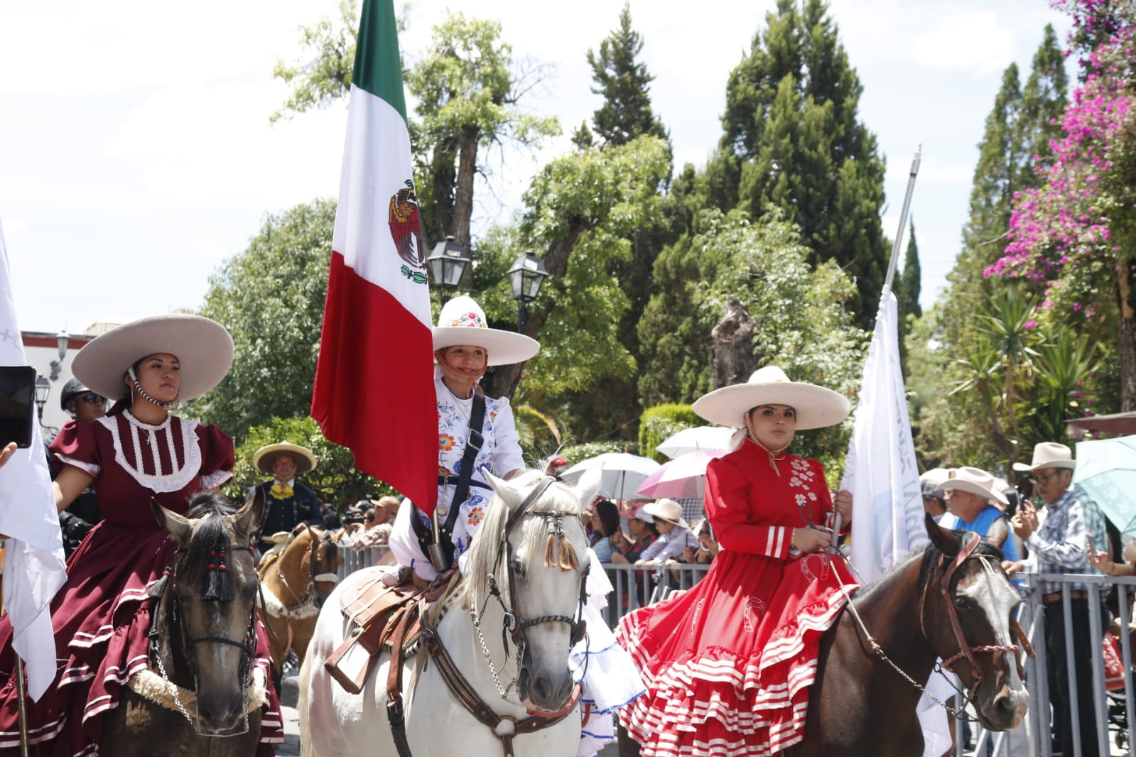 El alcalde José Humberto Salazar Contreras encabezó el recorrido en el que participaron cientos de jinetes, en su mayoría migrantes, que partieron desde el Puente del Río Grande hasta el jardín principal, continuando por la Presidencia Municipal y luego llegaron al Santuario de la Soledad, para seguir por la calle Aurora, la Parroquia y finalmente retornar al Jardín principal.