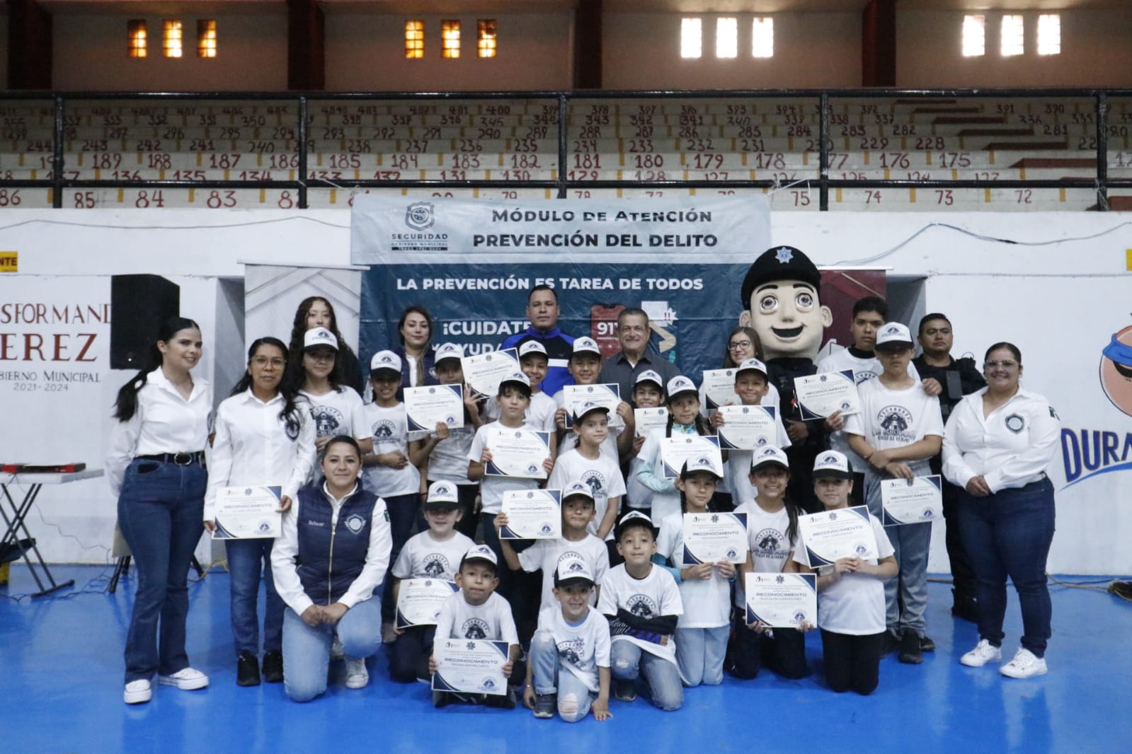 La Dirección de Seguridad Pública Municipal (DSPM) de Jerez, a través del área de Prevención del Delito que forma parte del gobierno municipal 2021-2024, brindó por segunda ocasión durante dos semanas, del 31 de julio al 11 de agosto, el curso “Escuadrón Infantil Segunda Generación”. En este curso, 27 niños de nivel primaria, con edades comprendidas entre los 6 y los 13 años, vivieron unas vacaciones diferentes, experimentando un aprendizaje interactivo y divertido basado en valores como el trabajo en equipo y la seguridad. La ceremonia de clausura tuvo lugar esta mañana en las instalaciones del auditorio Genaro Borrego Estrada.