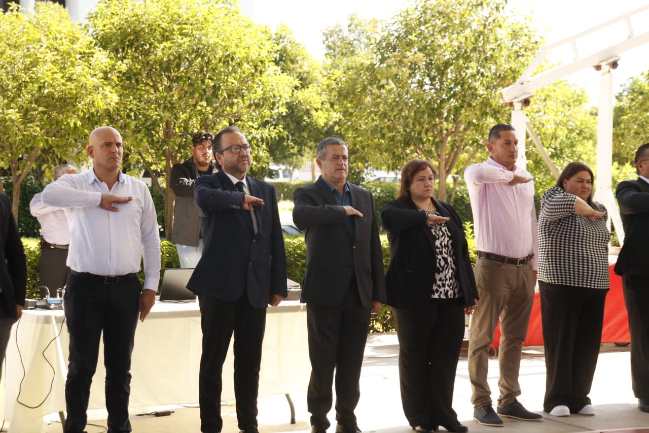 La ceremonia tuvo lugar en la plaza cívica del edificio escolar, en presencia de directivos, docentes, alumnos y personal de apoyo de la institución, así como invitados especiales, entre los que estuvo presente la síndico Adriana Márquez Sánchez, los directores de Desarrollo Económico y Social David Josafat de la Torre Pinedo y del SIMAPAJ Marco Antonio Valenzuela Esquivel, así como la jefa del departamento de educación María Esther Ibarra Guzmán.