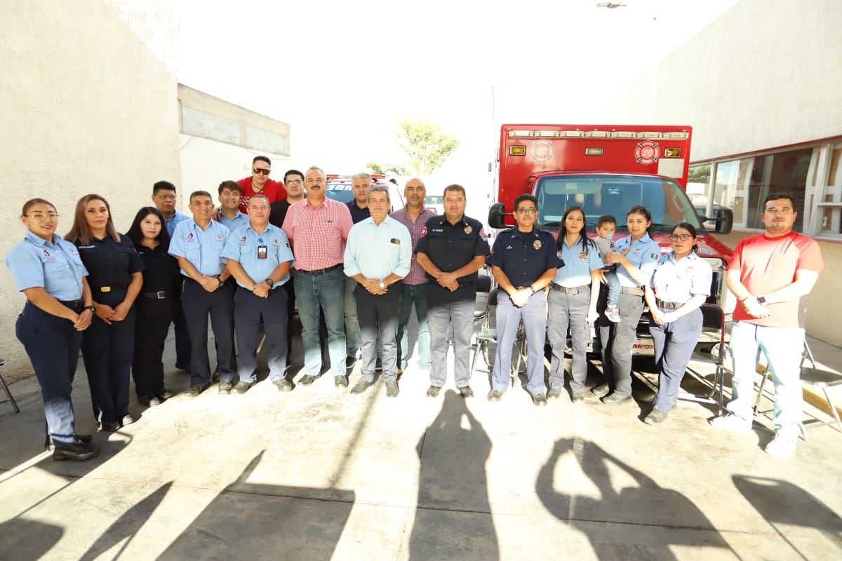 Durante la celebración de esta fecha conmemorativa a nivel nacional, el doctor Salazar compartió tiempo con el grupo de bomberos en su lugar de trabajo. Lo acompañaron el secretario de Gobierno Municipal, Héctor Hugo Ramírez Escobedo; el director de Obras y Servicios Públicos, Alfredo Marín Luna; Alonso Sánchez Bonilla y el coordinador municipal de Protección Civil, Raúl Solís de la Torre.