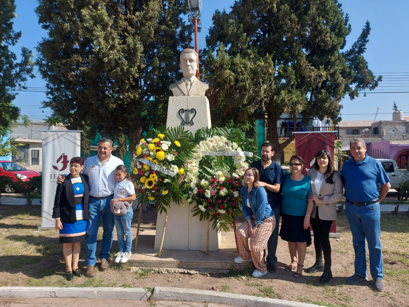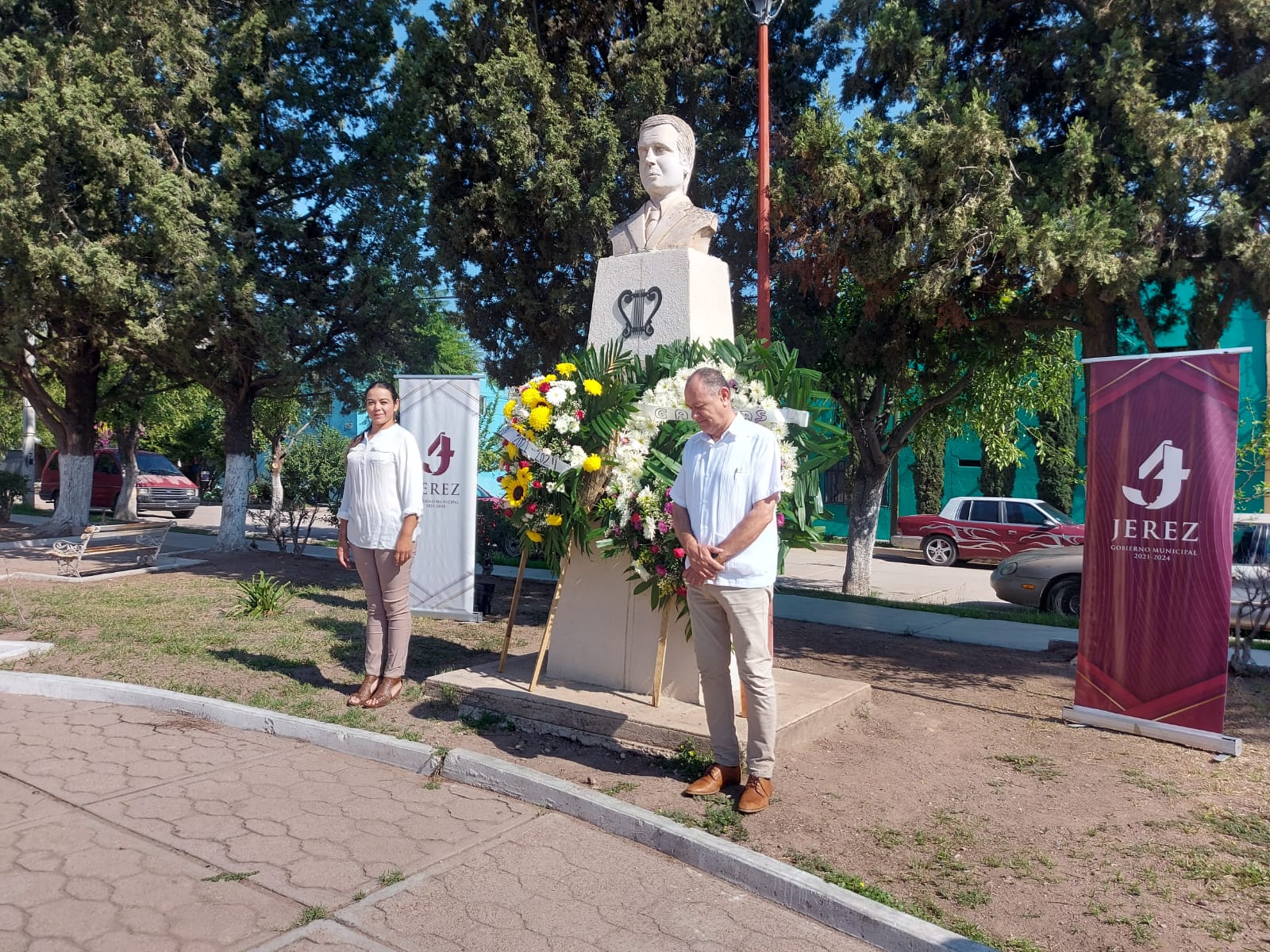 Las autoridades municipales y los familiares del jerezano Ventura García Lozano se reunieron para recordar al creador de la arracada Jerezana. Depositando una ofrenda floral ante el busto erigido en su memoria en el jardín del Fraccionamiento Candelario Huízar, este evento conmemoró el 67 aniversario de su fallecimiento.