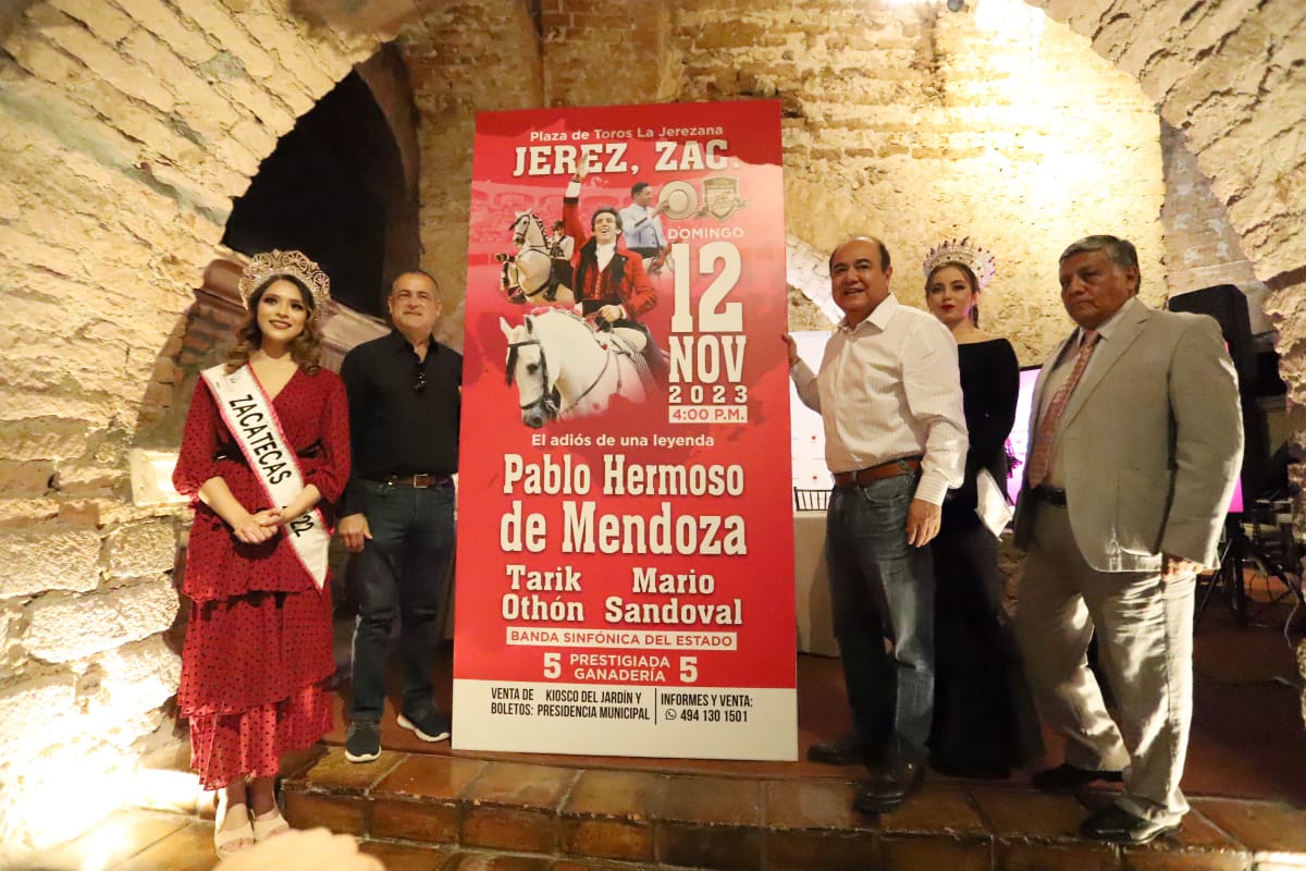 El alcalde José Humberto Salazar Contreras y el Secretario de Turismo de Zacatecas Le Roy Barragán Ocampo presentaron la corrida de despedida del llamado “Mejor Rejoneador del Mundo” Pablo Hermoso de Mendoza, que partirá plaza en La Jerezana, el domingo 12 de noviembre, en punto de las 16:00 horas, acompañado de los caballistas Tarik Othón y Mario Sandoval.