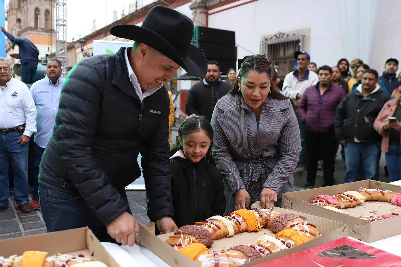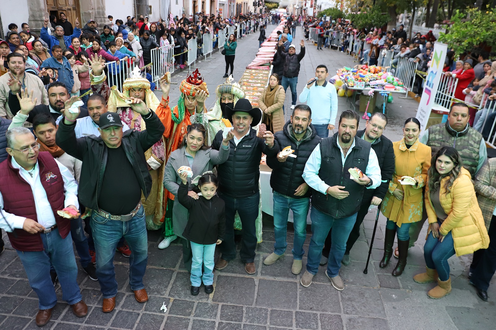 En el marco del Día de Reyes, el Presidente Municipal Rodrigo Ureño, acompañado de su esposa Estefana Casas, partió la primera Mega Rosca en Jerez. La iniciativa, promovida por la Panadería 7 Millas, fue el eje principal de una festividad que contó con la participación activa de diversos comercios y empresarios locales.