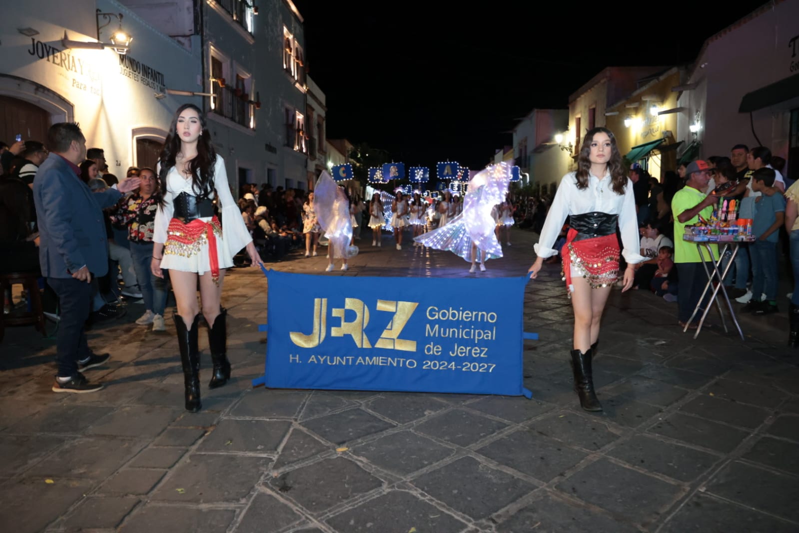 Miles de asistentes disfrutaron de un contingente lleno de luces, baile y música, protagonizado por planteles de nivel medio superior y superior, academias de danza y diversas agrupaciones que presentaron espectáculos visuales que reflejan el talento y la creatividad jerezana.