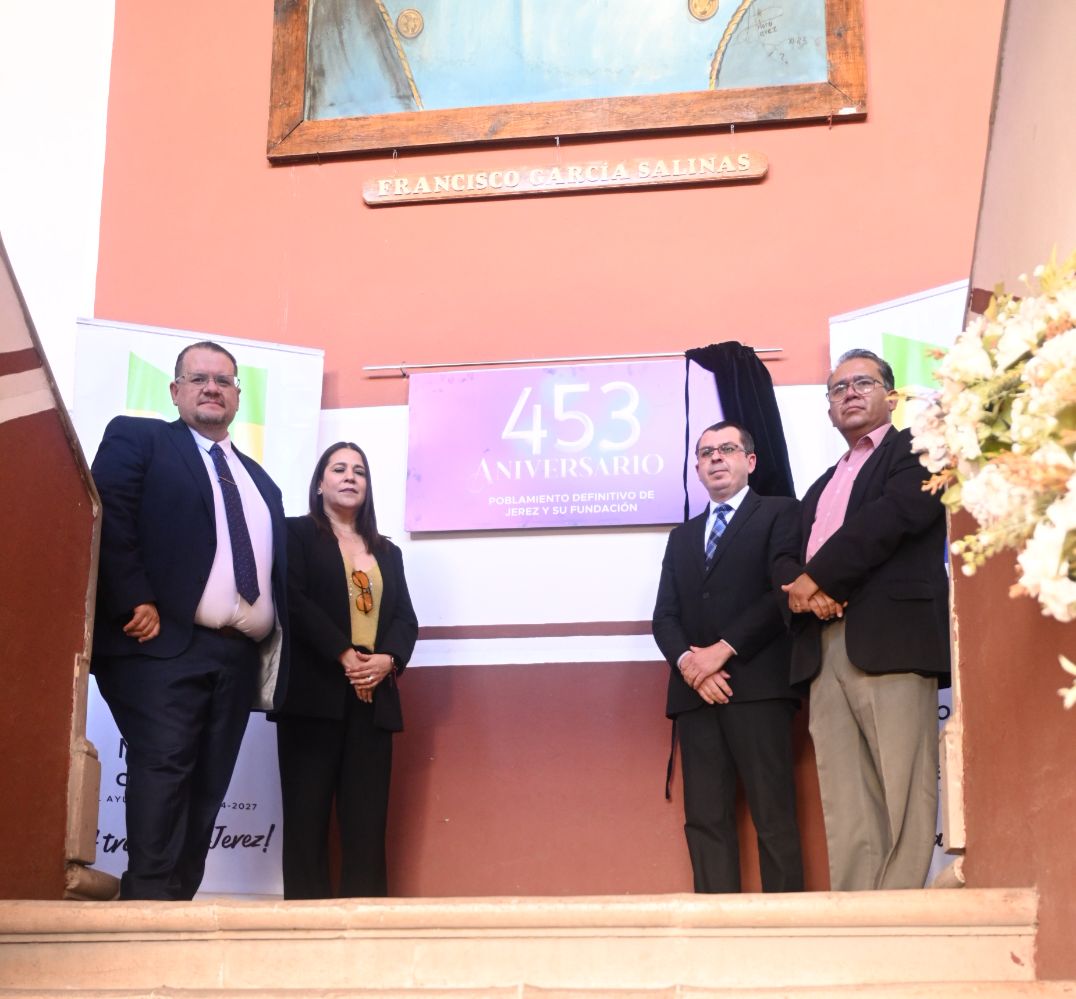 Integrantes del H. Ayuntamiento de Jerez que encabeza Rodrigo Ureño llevaron a cabo el acto oficial para conmemorar el 453.º Aniversario del Poblamiento Definitivo y Fundación de Jerez. Durante la ceremonia, se develó la leyenda conmemorativa de la fecha y se realizó una ofrenda floral en honor a los primeros pobladores.