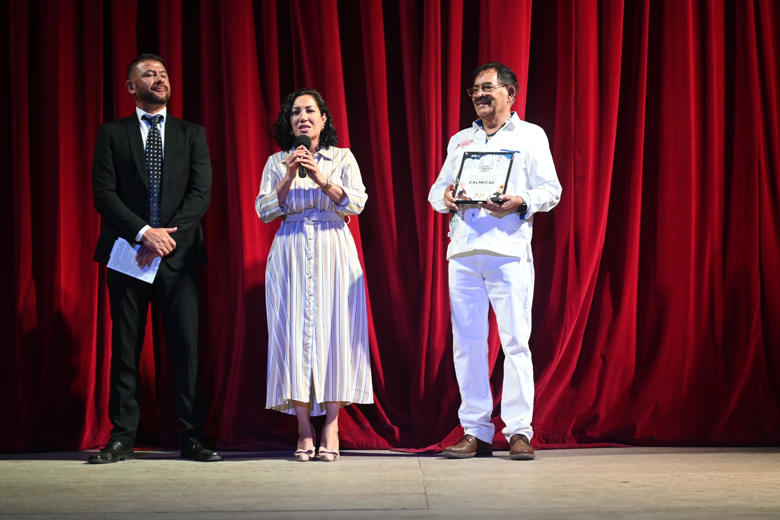 La función tuvo lugar en el majestuoso Teatro Hinojosa, que lució completamente lleno. Durante el evento, la encargada de la oficina del Instituto Jerezano de Cultura (IJC), Elizabet Murillo Guerrero, en representación del presidente municipal Rodrigo Ureño, destacó la importancia de integrar la cultura a los festejos feriales, especialmente en el marco de los 200 años de aniversario de esta celebración.