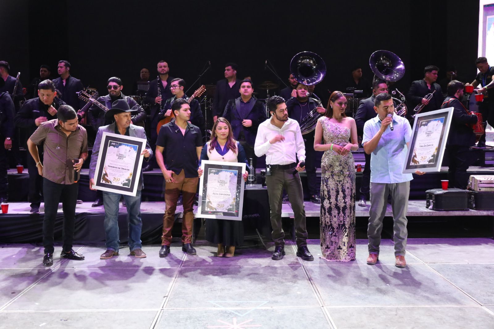 El presidente municipal Rodrigo Ureño y su esposa Estefana Casas subieron al escenario para entregar el reconocimiento a los invitados especiales, que abrieron su presentación con el tema “La Parranda”, siendo recibidos con la ovacion del público.