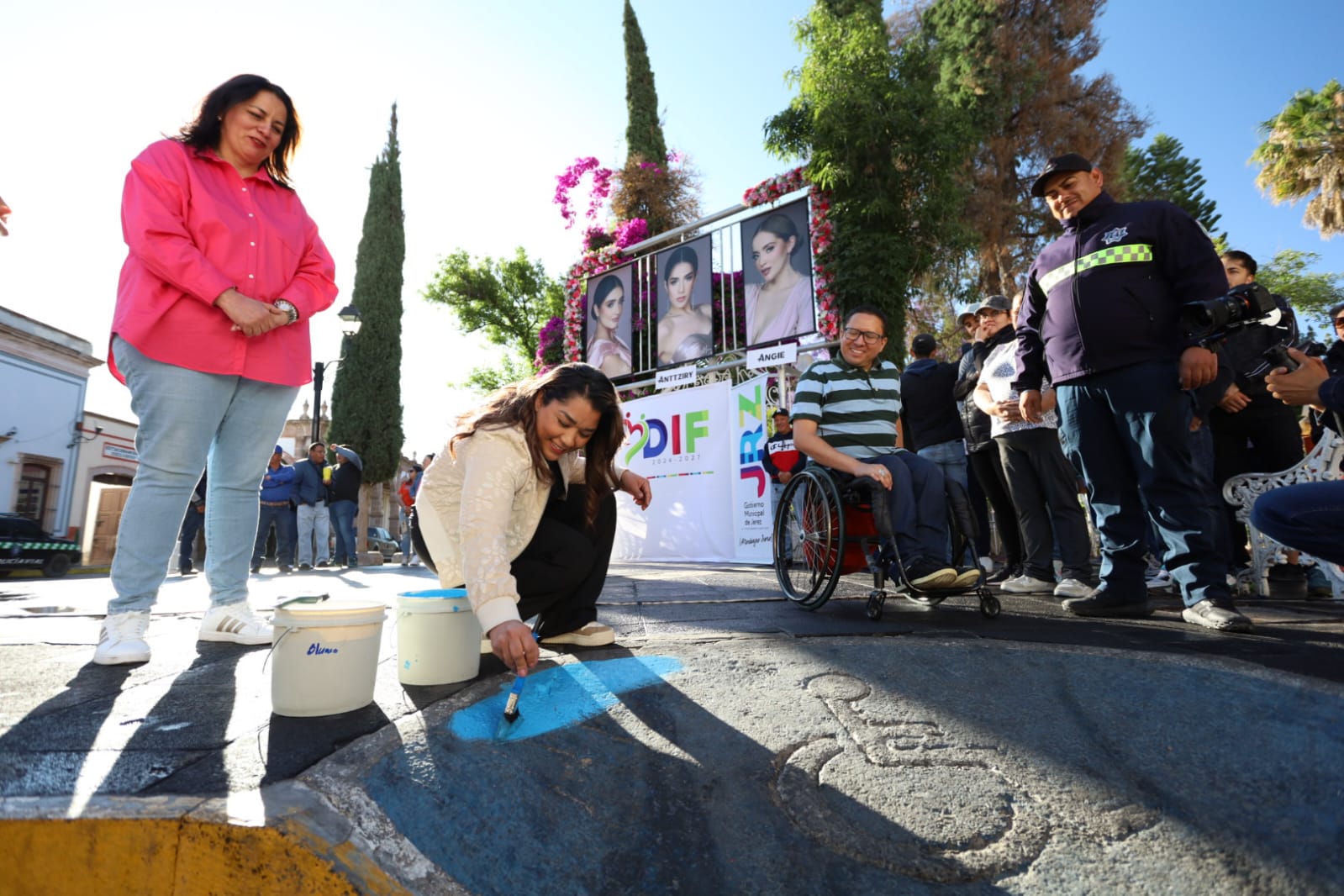 En el evento estuvieron presentes la directora del Sistema DIF, Martha Alamillo; el representante de la Policía Vial Municipal, Miguel Gutiérrez; la encargada de la Jefatura de Atención a la Discapacidad e Inclusión del DIF, Rocío Ibarra; y el enlace del Instituto para la Atención e Inclusión de las Personas con Discapacidad del Estado de Zacatecas, Ricardo de Luna. Como parte de las acciones, se dio inicio a los trabajos de pintura y mantenimiento de la señalética y los espacios reservados para personas con discapacidad en el primer cuadro de la ciudad.
