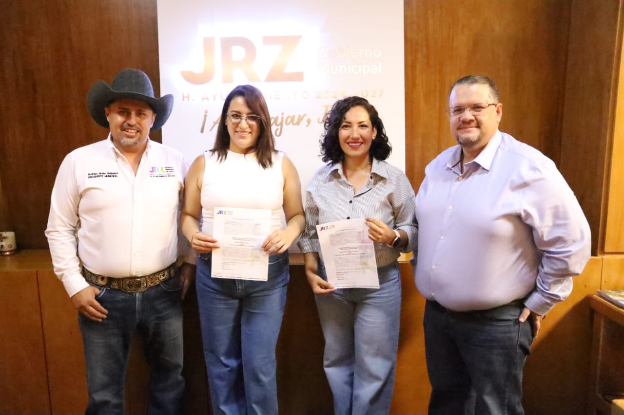 El presidente municipal de Jerez, Rodrigo Ureño, acompañado por el director de Desarrollo Económico y Social, David Juárez Caldera, hizo entrega de los nombramientos oficiales a las nuevas titulares del Instituto Jerezano de Cultura y del Departamento de Turismo, reafirmando su compromiso con el impulso al desarrollo cultural y turístico del municipio.