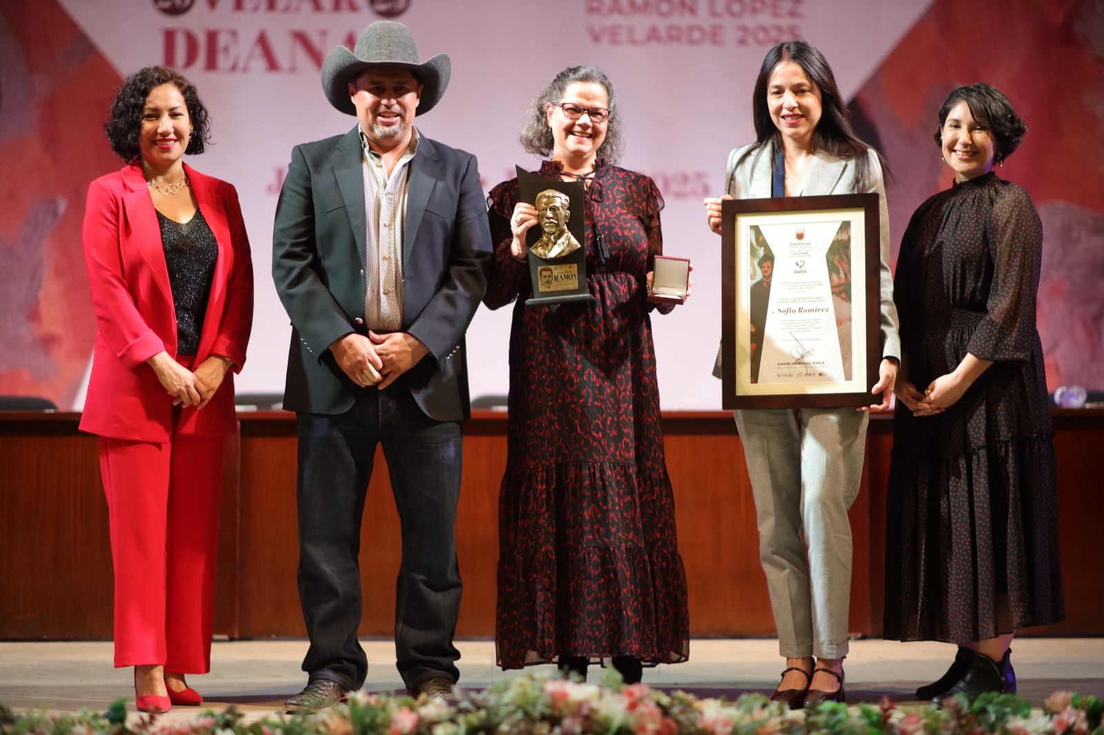 En el majestuoso Teatro Hinojosa, y ante un público que abarrotó el recinto, se llevó a cabo la entrega del Premio Iberoamericano Ramón López Velarde, distinción que fue otorgada a la escritora e investigadora Sofía Ramírez, por su destacada trayectoria de estudio y difusión de la vida y obra del insigne poeta jerezano.