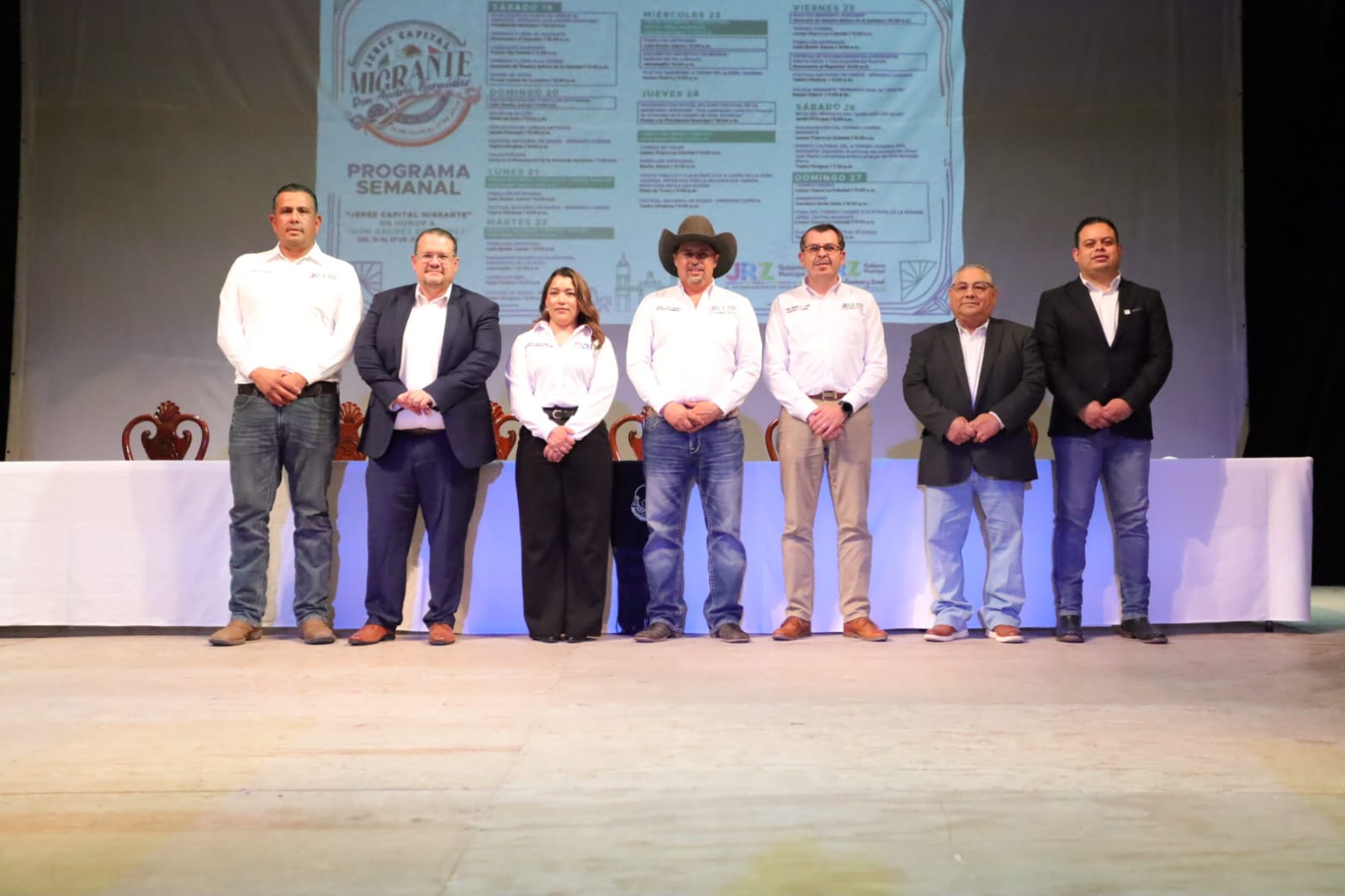 Teniendo como escenario el Teatro Hinojosa, el presidente municipal Rodrigo Ureño, acompañado por integrantes de su equipo de trabajo, presentó el Programa Oficial de la Semana “Jerez, Capital Migrante”, evento que se llevará a cabo del 19 al 27 de julio y que este año está dedicado a Don Andrés Bermúdez, conocido como el “Rey del Tomate”.