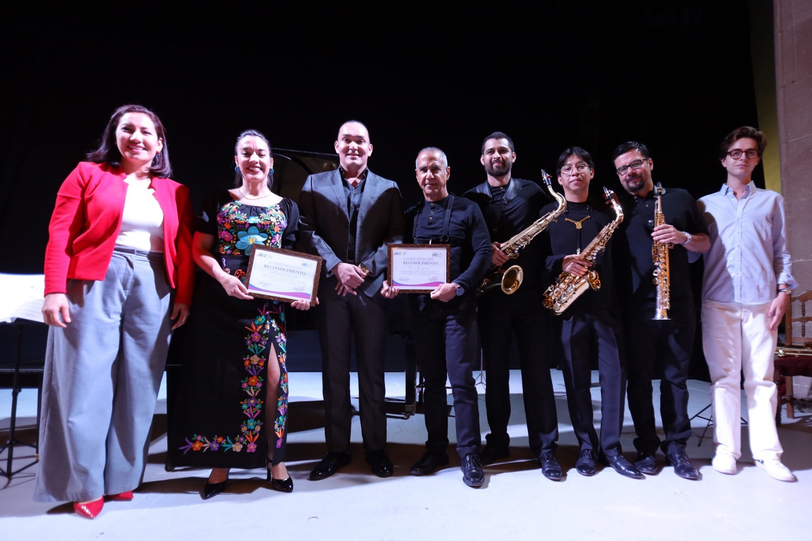 El Gobierno Municipal de Jerez, comprometido con la promoción del arte y la cultura, organizó este evento que reunió a intérpretes de gran nivel. Al concluir el concierto, la directora del Instituto Jerezano de Cultura, Elizabeth Murillo, en representación del presidente municipal Lic. Rodrigo Ureño, entregó reconocimientos a los artistas, destacando su invaluable contribución a la riqueza cultural de Jerez.