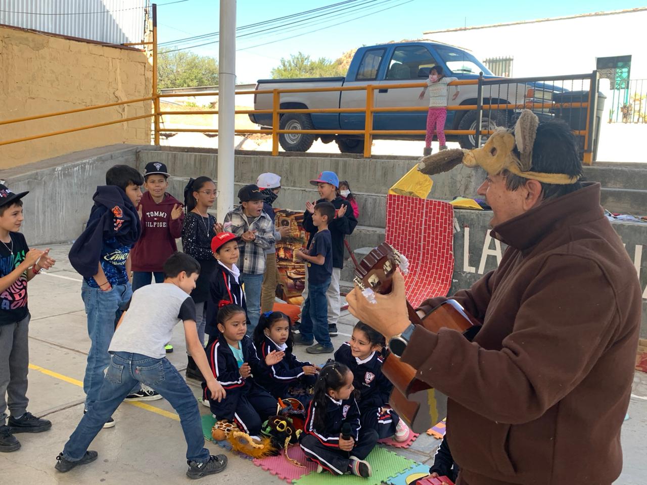 Como parte del proceso de reapertura de la biblioteca “Eugenio del Hoyo Cabrera”, de la comunidad La Gavia, este martes los estudiantes de preescolar y la primaria, acompañados de papás, abuelos y docentes, disfrutaron el espectáculo de cuentacuentos lúdico y musical de los bibliotecarios del municipio.