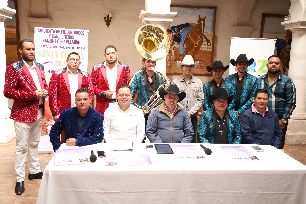 Integrantes del Sindicato de Filarmónicos y Cancioneros Ramón López Velarde de Jerez ofrecieron una rueda de prensa para invitar a la tradicional fiesta patronal en honor a Santa Cecilia, que año con año se celebra en la colonia Candelario Huízar.