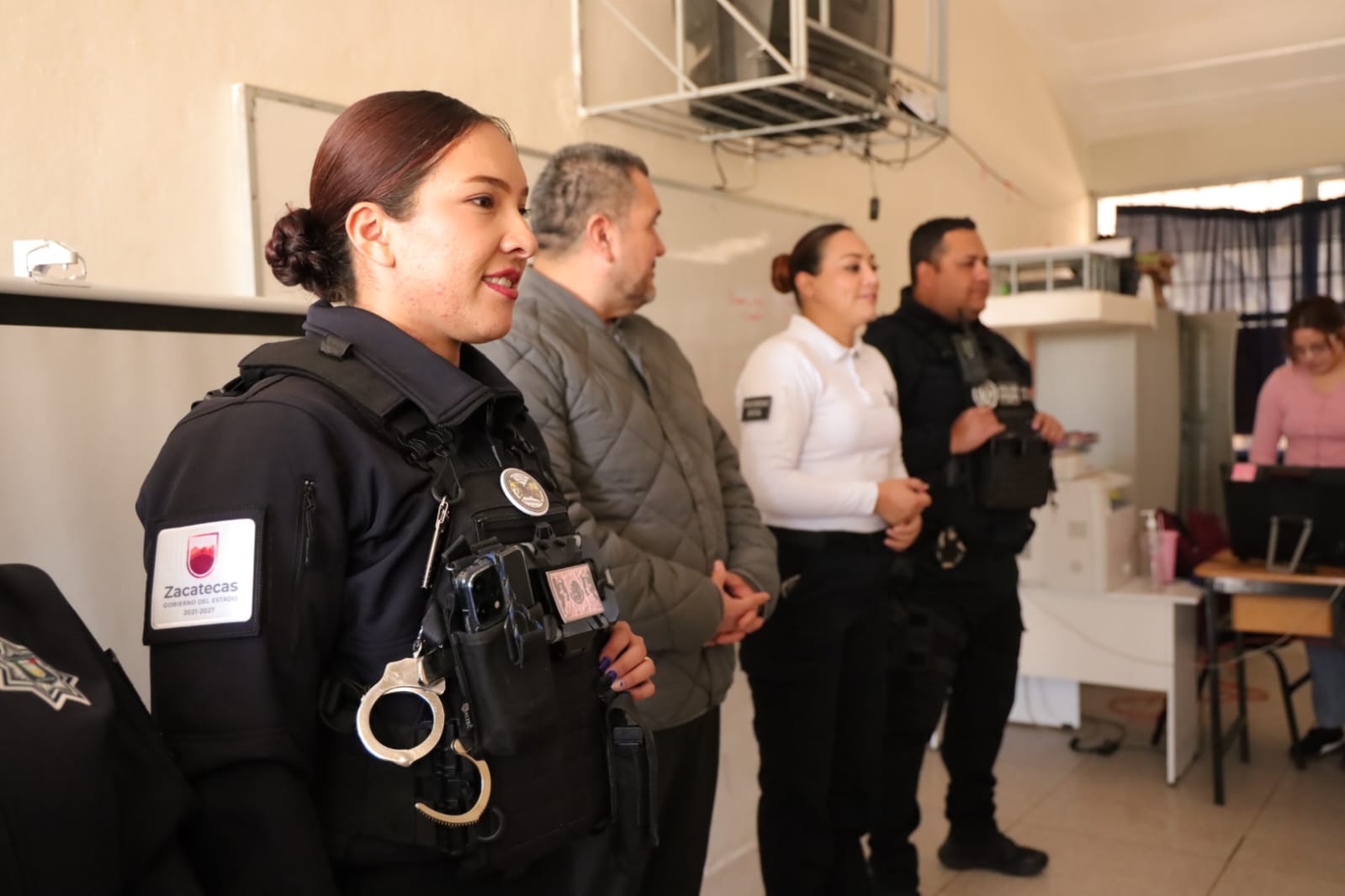 Jerez, Zac.– Con el objetivo de fortalecer la cultura de la prevención y el uso responsable de las tecnologías, el área de Prevención del Delito de la Dirección de Seguridad Pública Municipal de Jerez de García Salinas impartió una plática informativa sobre Delitos Cibernéticos en la comunidad de El Moral, dirigida a alumnas y alumnos de la Escuela Secundaria Juan Escutia.