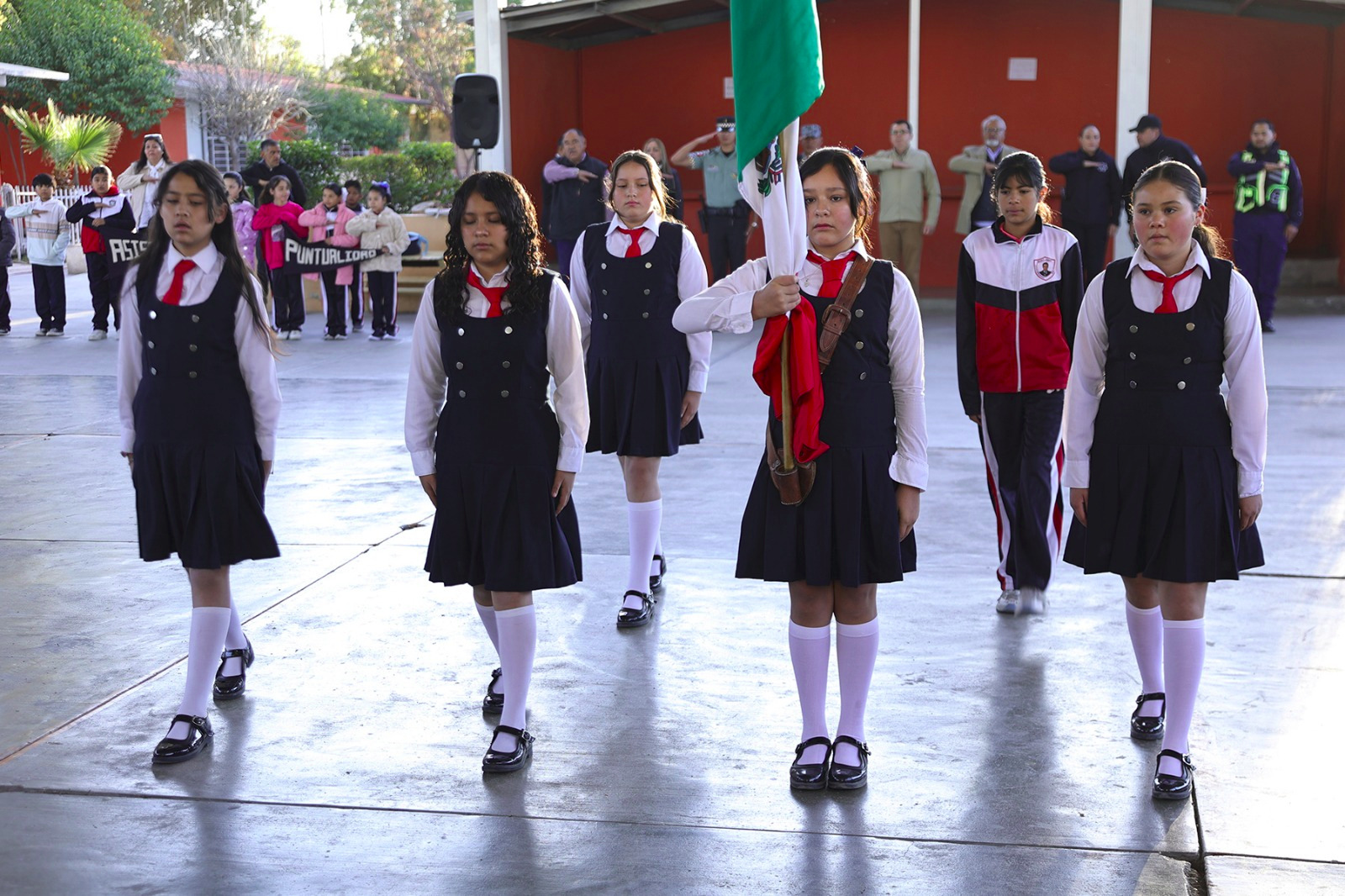 Jerez, Zac.– El Gobierno Municipal, encabezado por Rodrigo Ureño, la Policía Municipal y Guardia Nacional, asistieron a la ceremonia de Honores a la Bandera en la Escuela Primaria Adolfo López Mateos, ubicada en la colonia San Francisco.