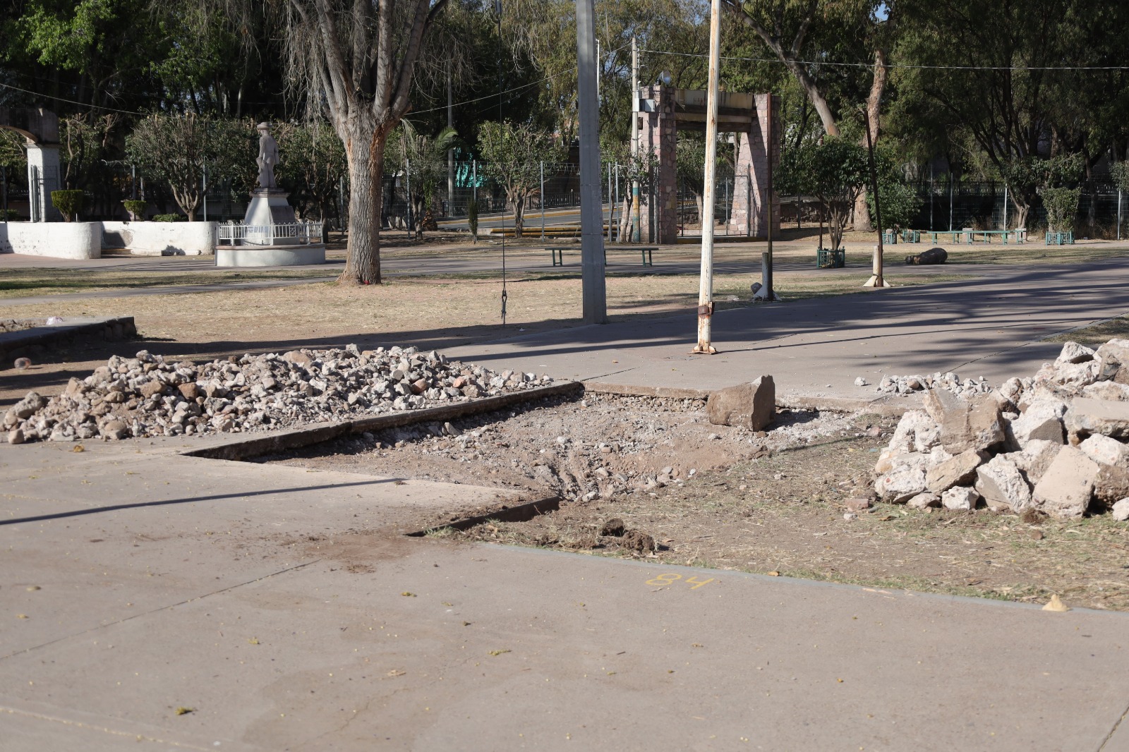 Asimismo, cuadrillas de Bacheo realizan la rehabilitación de 184 metros cuadrados en los andadores del circuito ferial. Estas acciones responden a la necesidad de corregir hundimientos y reparar losas de concreto que han sido levantadas por raíces de árboles, situaciones que representaban un riesgo para los peatones.