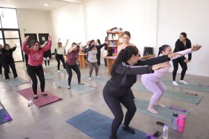 Durante la actividad se realizaron ejercicios enfocados en el fortalecimiento muscular, el equilibrio, la flexibilidad y el bienestar físico, combinando movimientos de ballet, pilates y entrenamiento funcional. Esta dinámica tuvo como finalidad promover el autocuidado, la salud física y el empoderamiento de las mujeres a través de la actividad física.