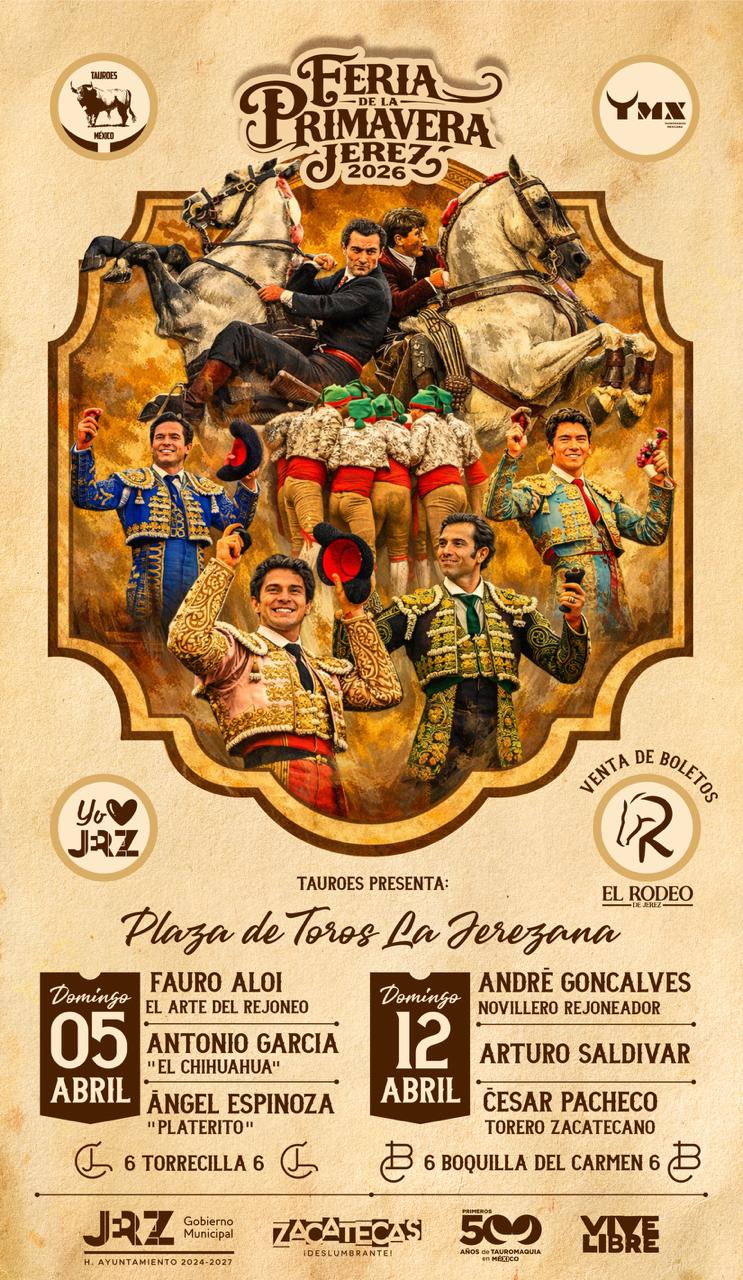 Como parte central del acto se realizó la develación oficial del Cartel Taurino de la Feria de la Primavera Jerez 2026, a cargo del director de TauroEs, Silverio López García, y del presidente municipal Rodrigo Ureño Bañuelos. Se anunció que el domingo 5 de abril se llevará a cabo la primera corrida con toros de la ganadería Torrecilla, con la participación del rejoneador Fauro Aloi y los matadores Antonio García “El Chihuahua” y Ángel Espinosa “Platerito”. Asimismo, el domingo 12 de abril se realizará la segunda corrida con toros de la ganadería Boquilla del Carmen, en la que participarán el rejoneador André Gonzalvez y los matadores Arturo Saldívar y César Pacheco.
