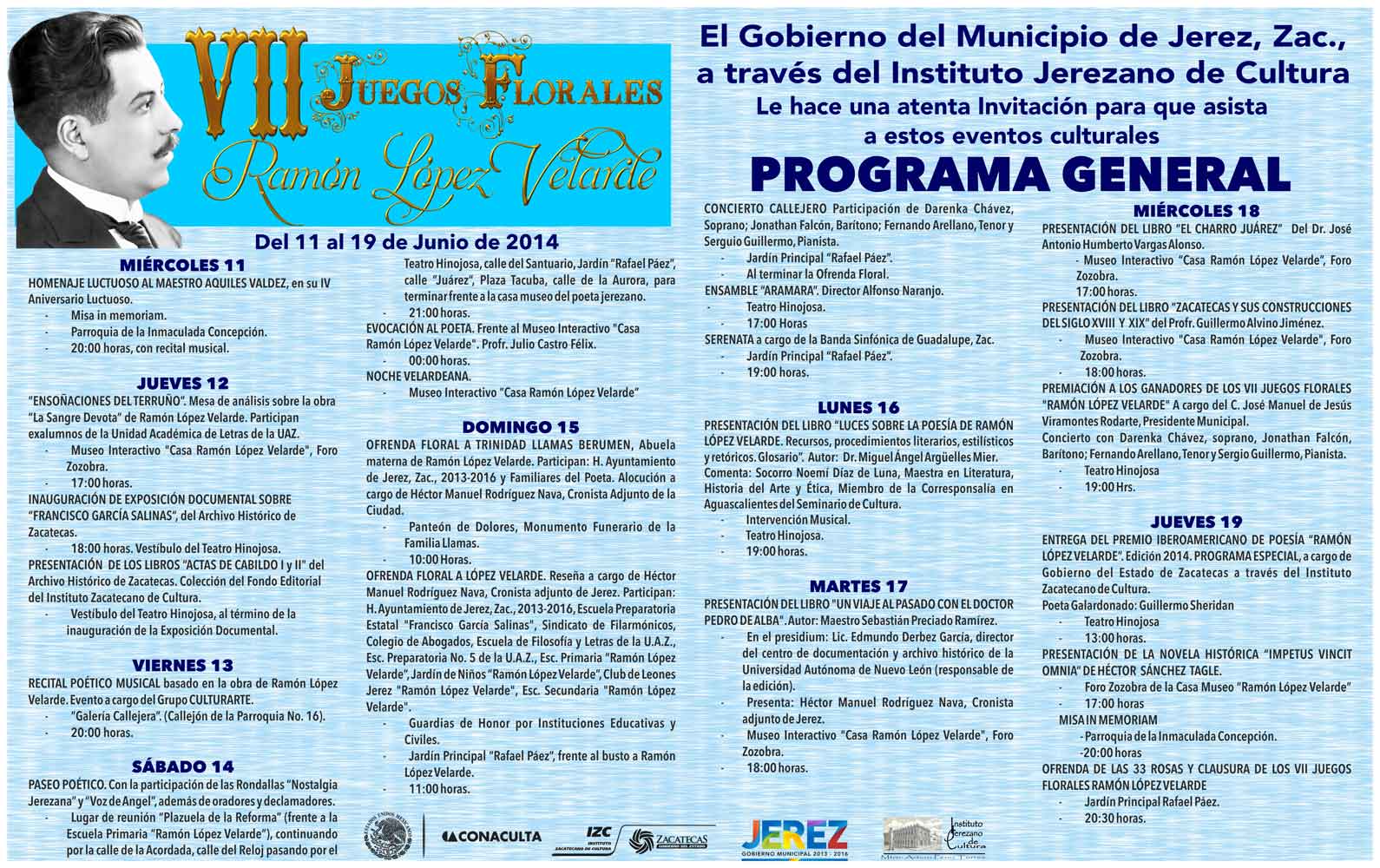 Con el objetivo de perpetuar el legado cultural que dejó Ramón López Velarde, el Ayuntamiento pondrá en marcha un programa nutrido y diferente con más de 20 eventos, que conformarán los Séptimos Juegos Florales en honor el afamado poeta jerezano.